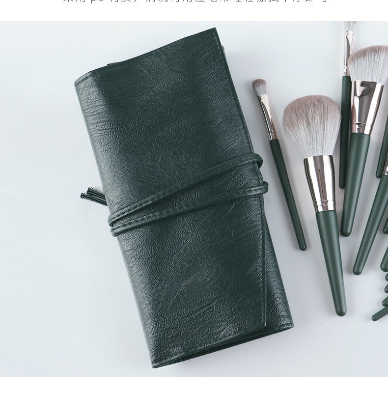 14PCS Green Makeup Brush Set Soft Bristles Wooden Handle Professional Cosmetic Brushes Full Kit